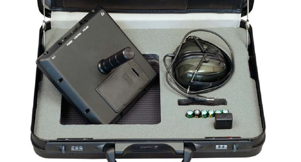 The gadget – a portable flat screen with wireless headphones – hunts down its target via an electromagnetic field emitted by the suicide belt’s explosives.